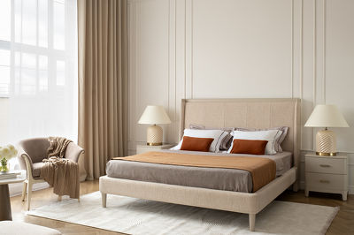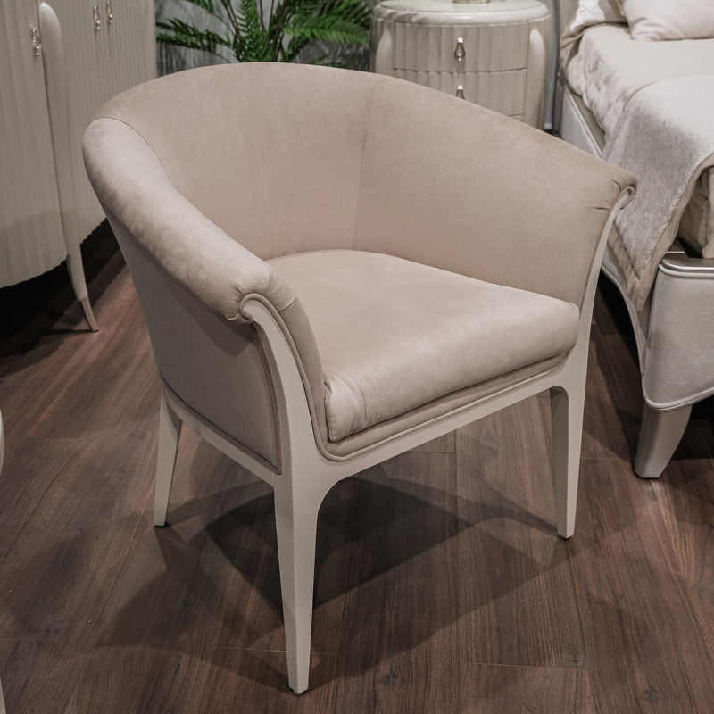 Кресло, отделка бежевый блестящий лак, ткань Finka-43A
