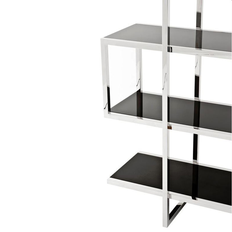 Стеллаж Soto, отделка полированная нержавеющая сталь, черное стекло