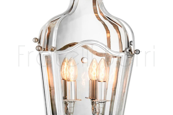 Бра из латуни Elysee от Eichholtz в виде винтажного цилиндра. Модель дополнена прозрачным стеклом. Из-за шикарной отделки в цвете серебра свет в бра удивительно красиво бликует.