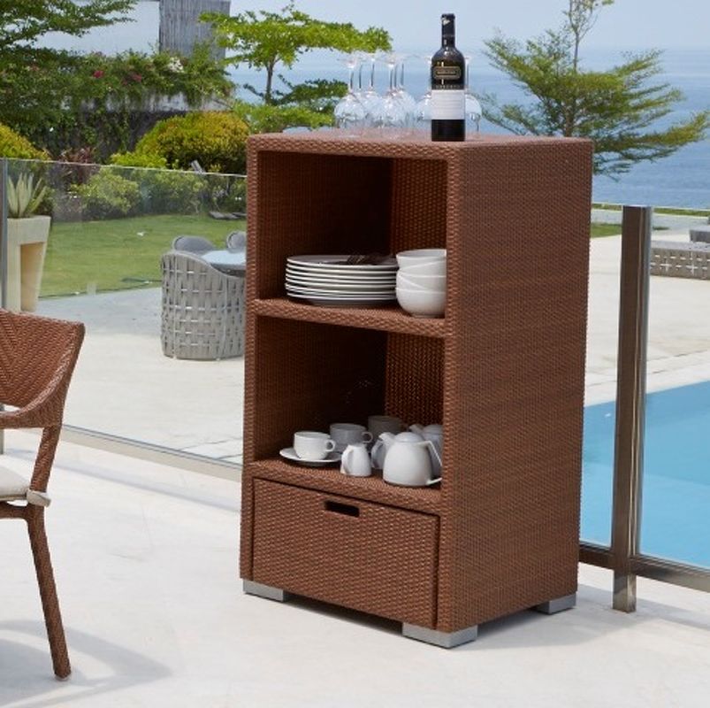 Оснащен 1 выдвижным ящиком и полкой. Стеллаж предназначен для использования на террасе, в саду или гостиной.