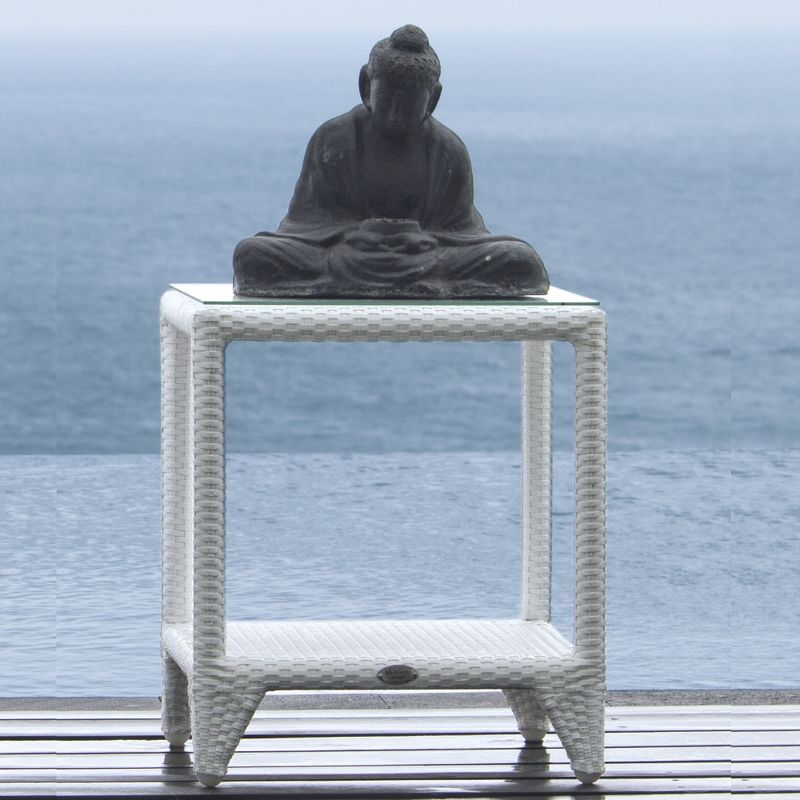 Приставной столик Malta, отделка искусственный ротанг белого цвета, стекло