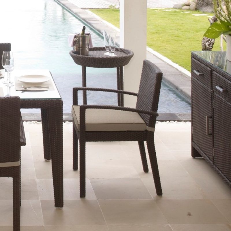 Стул коллекции Malta выполнен в колониальном стиле из искусственного ротанга испанскими мастерами вручную на легком каркасе из алюминиевого профиля. Стул предназначен для использования на террасе, в саду или гостиной. Отделка подушки выполнена из американской ткани SUNBRELLA, которая устойчива к солнечным лучам, влаге и легко чистится.