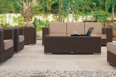 Банкетка коллекции Cuatro выполнена в современном стиле из искусственного ротанга испанскими мастерами вручную на легком каркасе из алюминиевого профиля. Банкетка предназначена для использования на террасе, в саду или гостиной. Отделка подушки выполнена из американской ткани SUNBRELLA, которая устойчива к солнечным лучам, влаге и легко чистится.