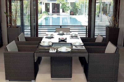 Обеденный прямоугольный стол коллекции Pacific выполнен в современном стиле из искусственного ротанга испанскими мастерами вручную на легком каркасе из алюминиевого профиля. Стол предназначен для использования на террасе, в саду или гостиной.