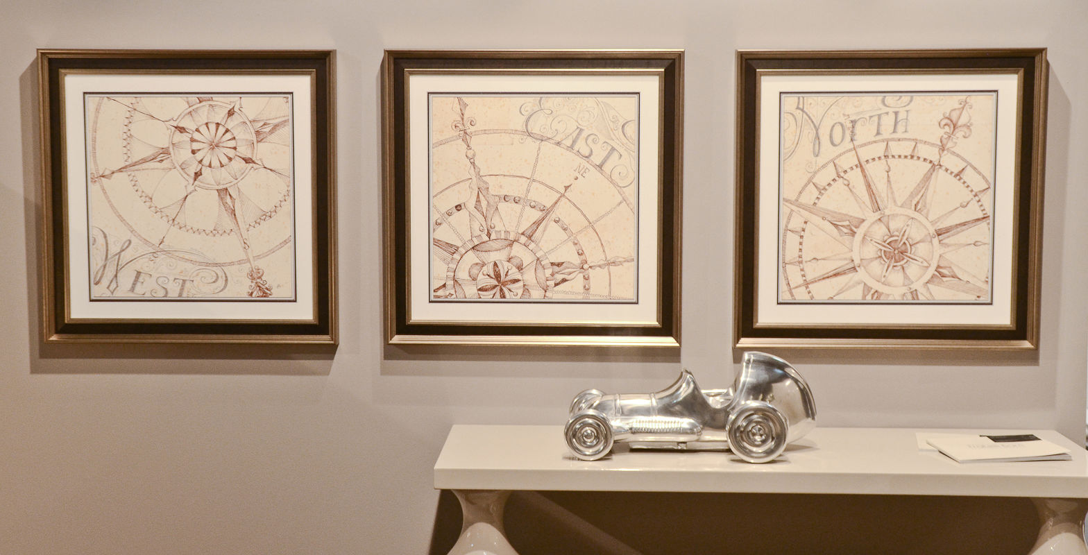 Комплект из трех постеров в бронзовых рамах дополнит современный интерьер.