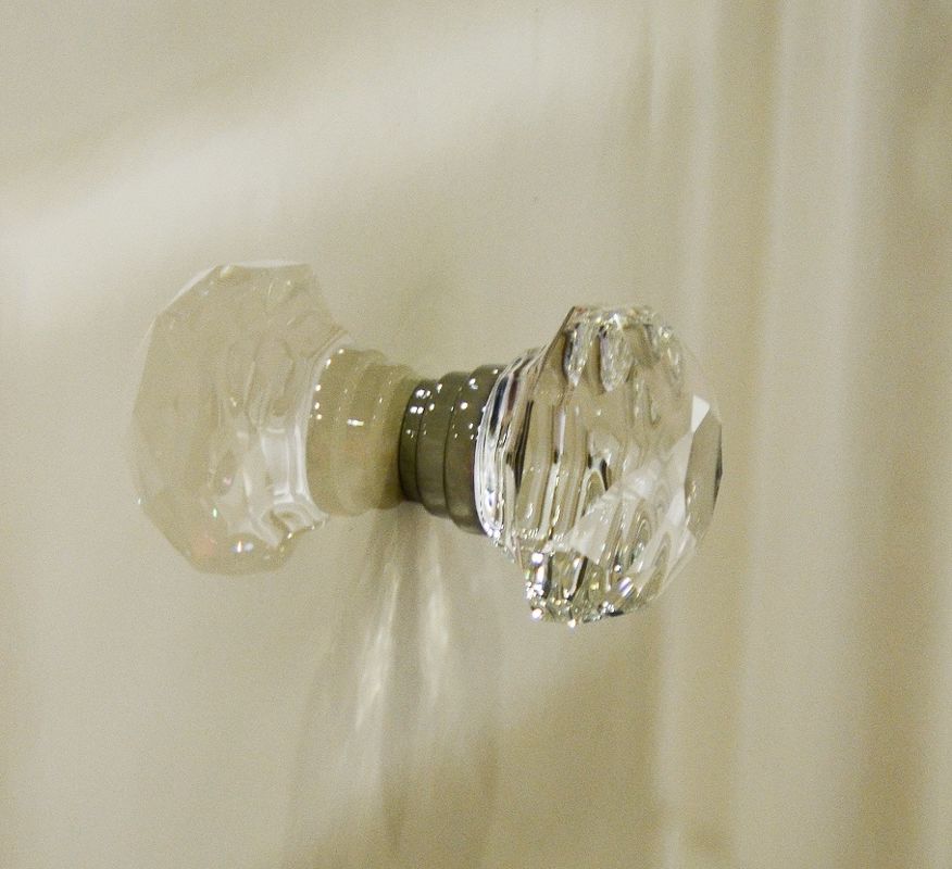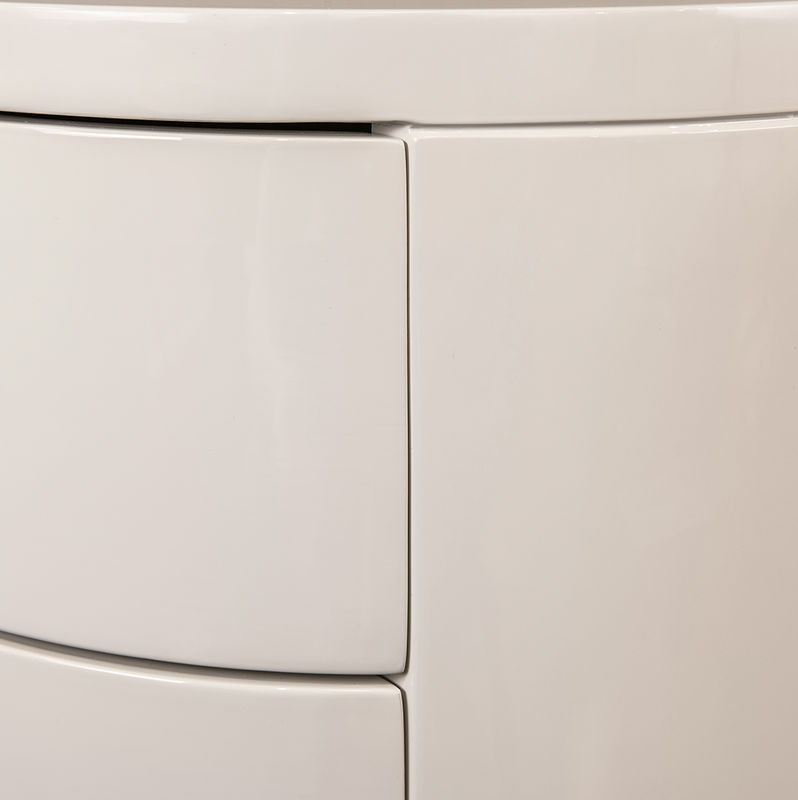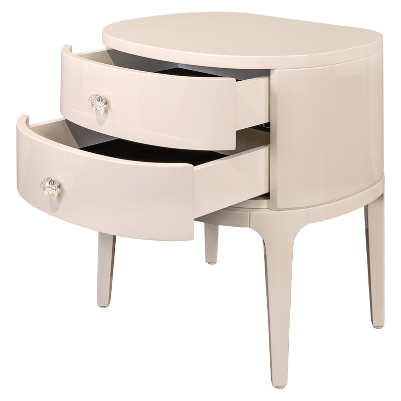 Прикроватная тумбочка, отделка бежевый блестящий лак, ручки-хрусталики