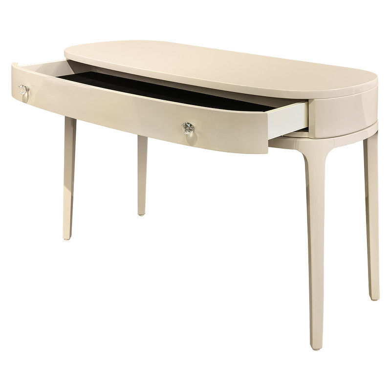 Консоль, отделка бежевый блестящий лак, ручки-хрусталики