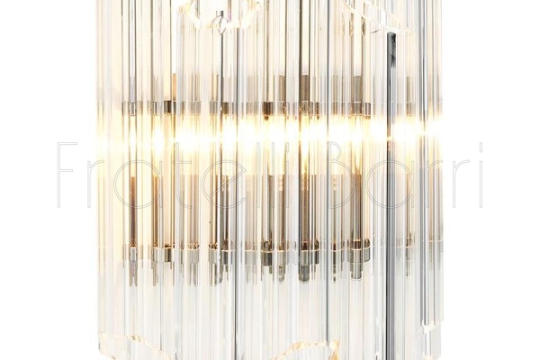 Благодаря ослепительному дизайну с ребристыми трубками из прозрачного стекла, это блестящее бра с никелевой отделкой создает потрясающее свечение в любом интерьере, элегантно украшая его.