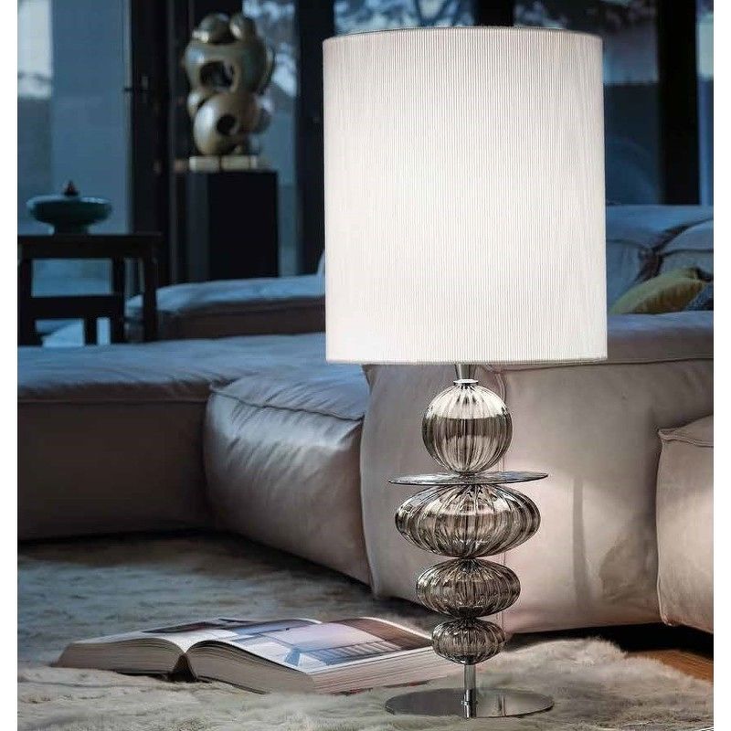 Настольная лампа, отделка хром, дымчатое стекло, белый абажур