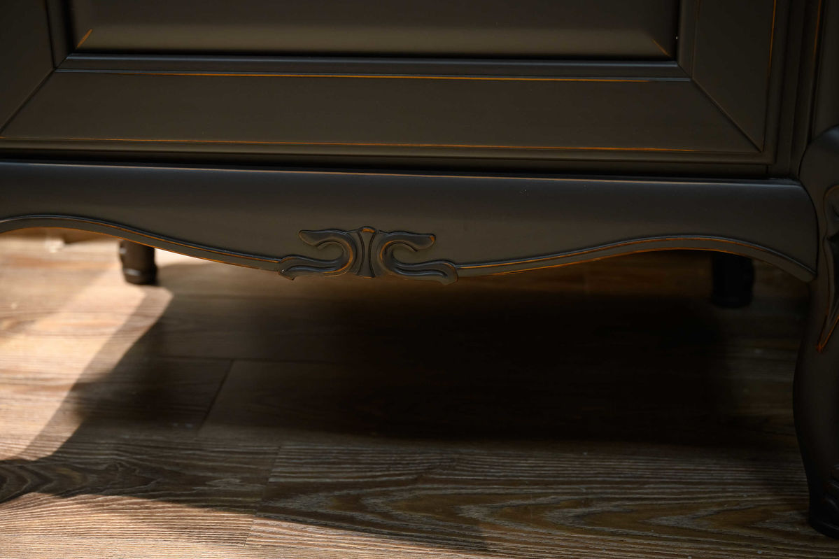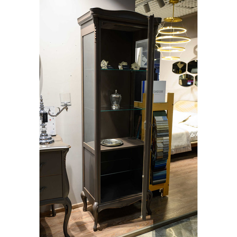 Витрина на изогнутых ножках, являющаяся частью этой коллекции, выгодно подчеркнет роскошь созданного вами интерьера. В отделке использован матовый шелковистый лак Moka. Он полностью экологичен и не имеет запаха.