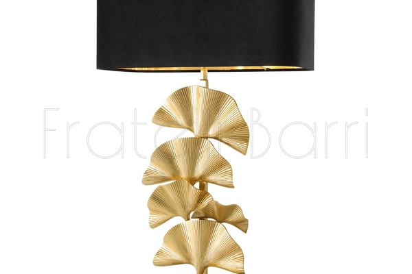 Благодаря элегантным изгибам и замысловатым деталям эта лампа придаст тропическую роскошь вашему интерьеру. В основании лампы использованы 4 пальмовых листа из полированной латуни и основание из черного гранита. Она поставляется с черным бархатным абажуром.
