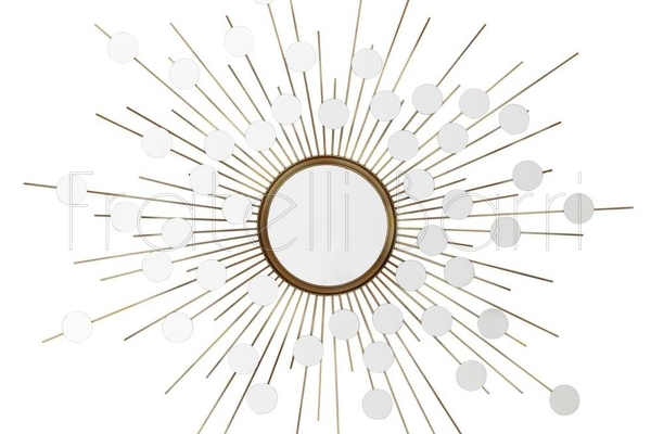 Это сияющее круглое настенное зеркало украсит ваше пространство. Золотая рама из античной латуни дополнена ярким дизайном — маленькими круглыми зеркалами, придающими зеркалу поистине ослепительный вид.