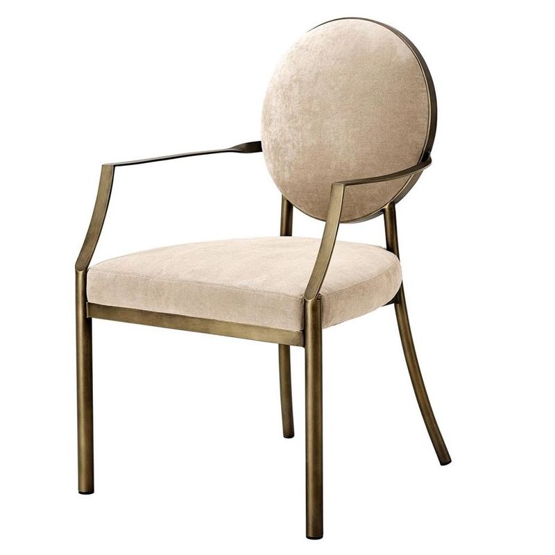 Стул с подлокотниками Scribe, отделка темная латунь, серый велюр
