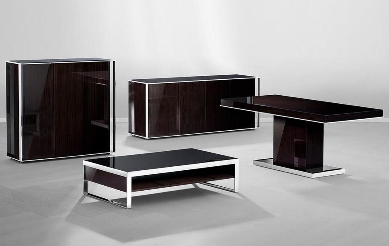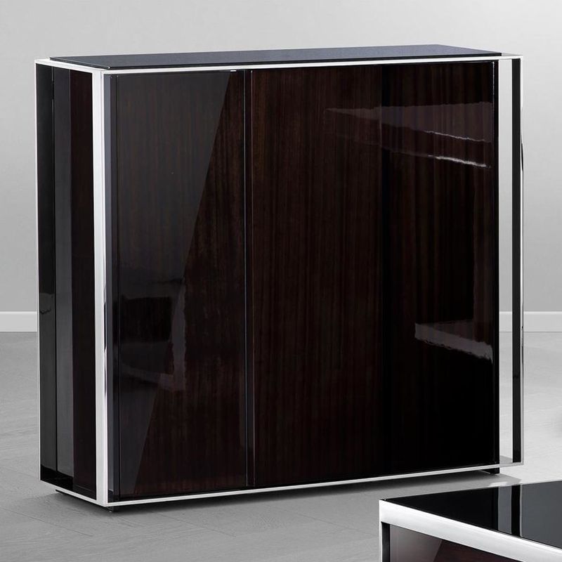 Бар Park Avenue, отделка полированная нержавеющая сталь, глянцевый шпон эбенового дерева