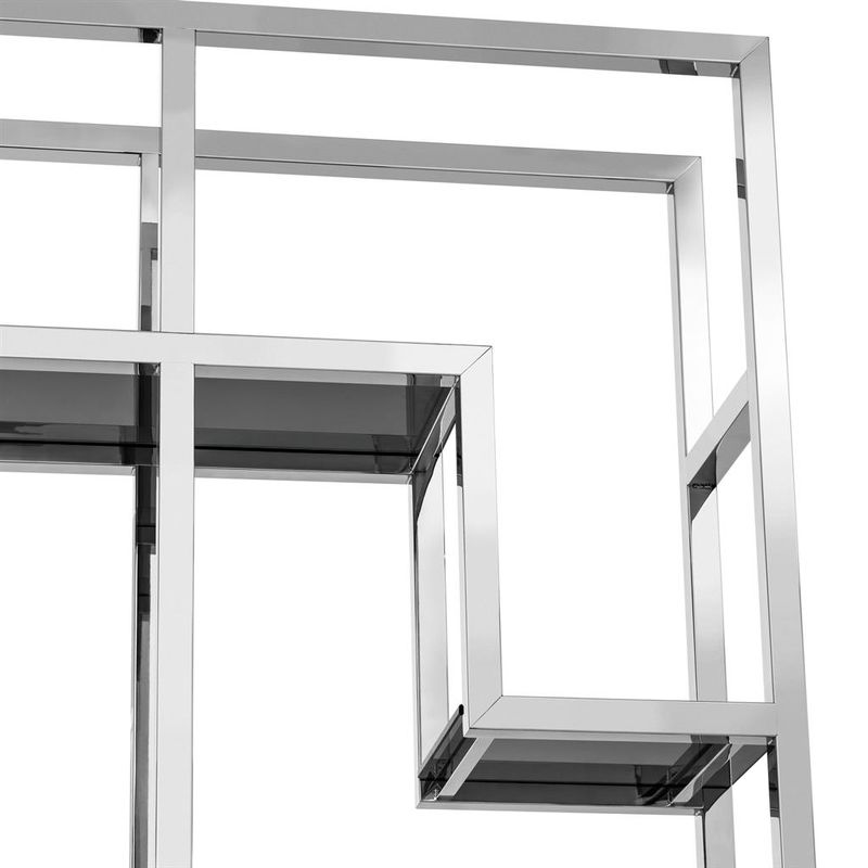 Стеллаж Lagonda, отделка полированная нержавеющая сталь, дымчатое стекло