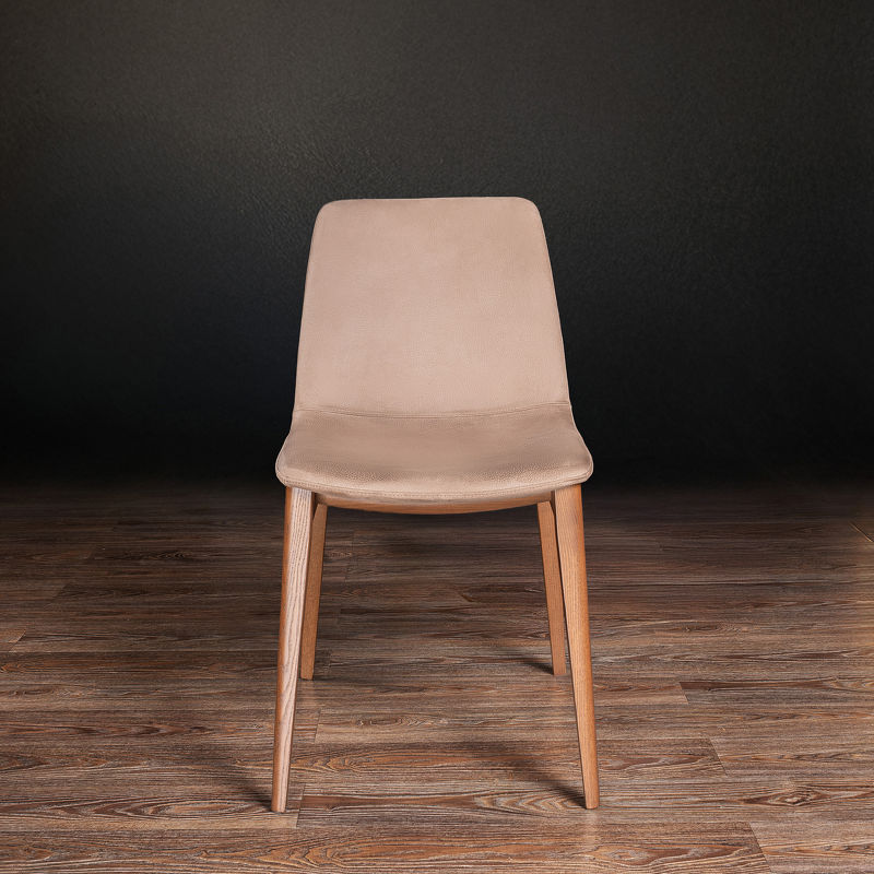 Стул с прямой спинкой выполнен в современном стиле. Обтянут кожей нубук. Четкие линии подчеркивают простоту и элегантность модели.