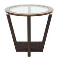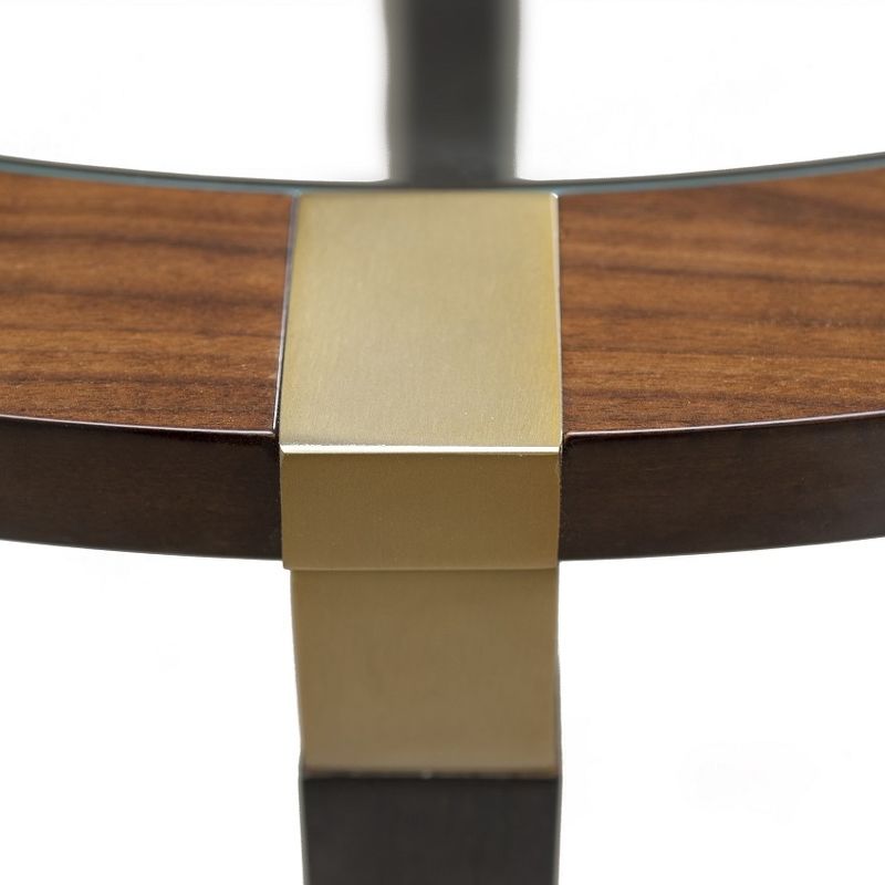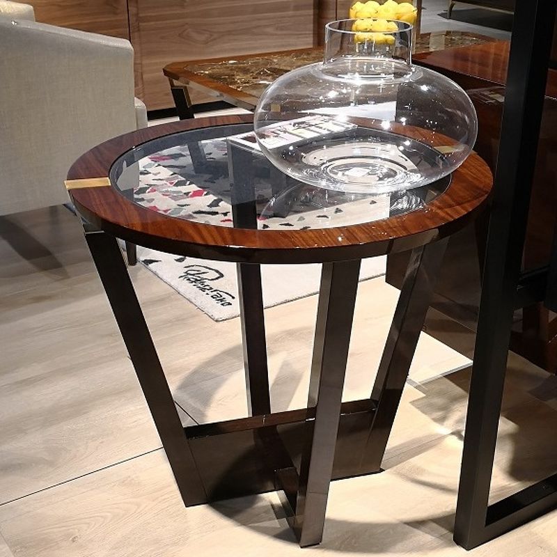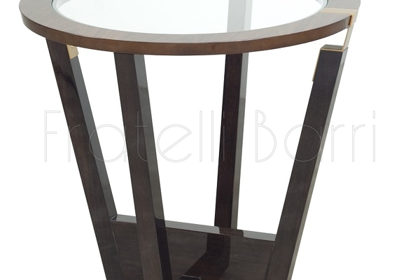 Приставной столик, отделка 709 глянцевый миндальный орех, 725 глянцевый шпон темного ореха, M02 латунь, стекло