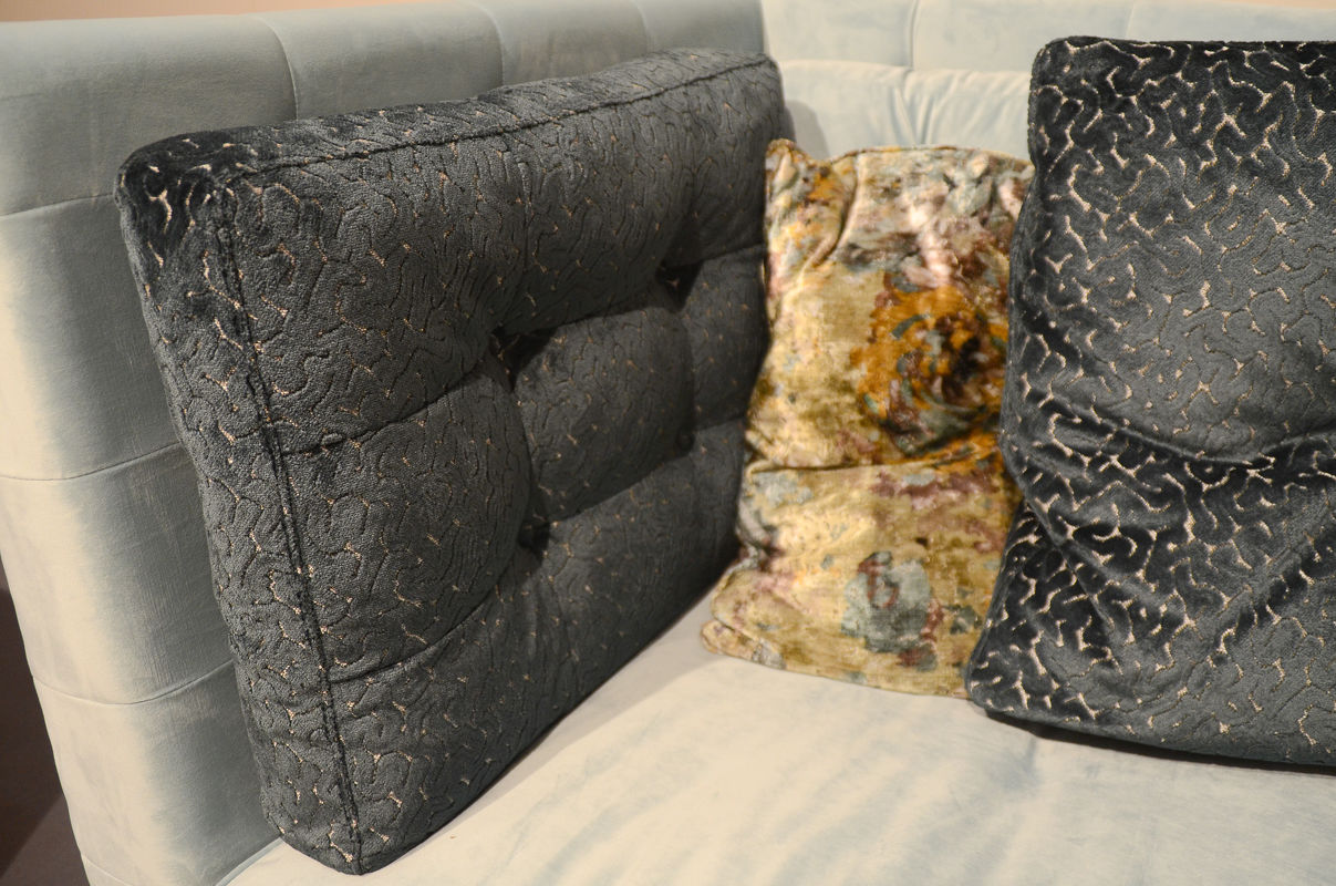 Декорирован стежкой капитоне и мебельными гвоздиками. Чехлы не съемные.