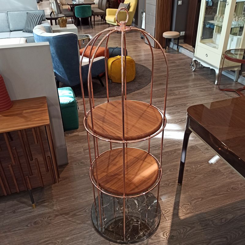 Стеллаж Tweet, отделка медь, мрамор Emperador, орех Canaletto
