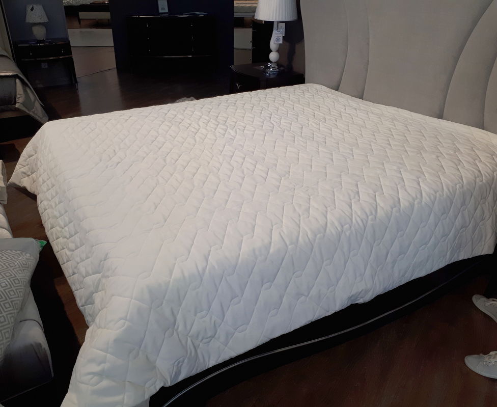 Стильное стеганое покрывало будет гармонично смотреться в вашей спальне и придаст интерьеру завершенность. Форма стежки - соты.