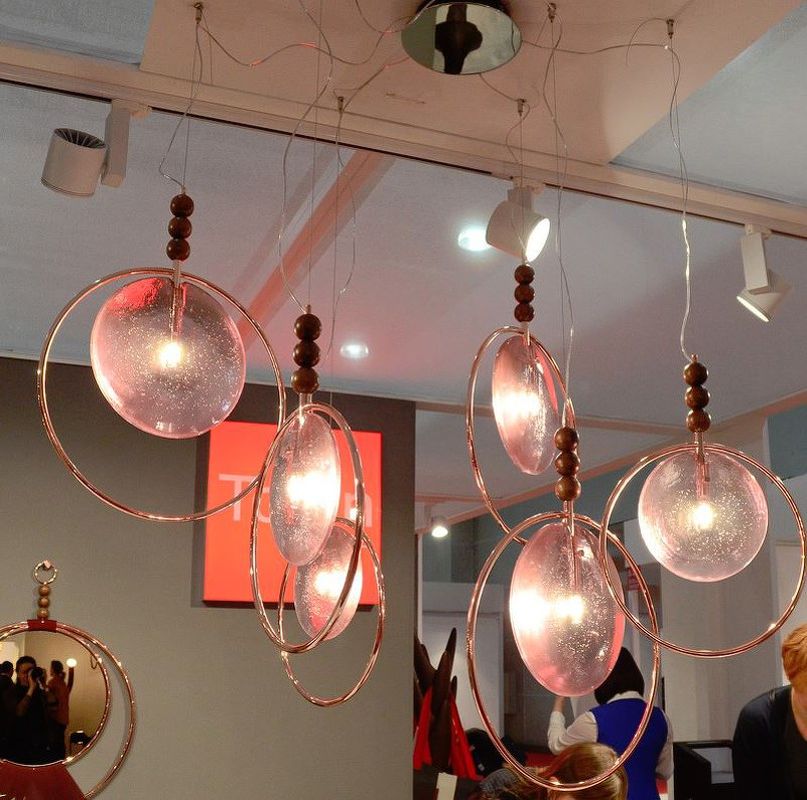 Подвесная люстра Dreamy, отделка медный хром, розовое стекло, орех Canaletto