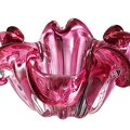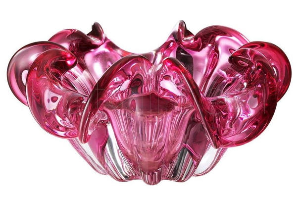 Низкая ваза с объемным фигурным краем выполнена вручную из выдувного стекла.