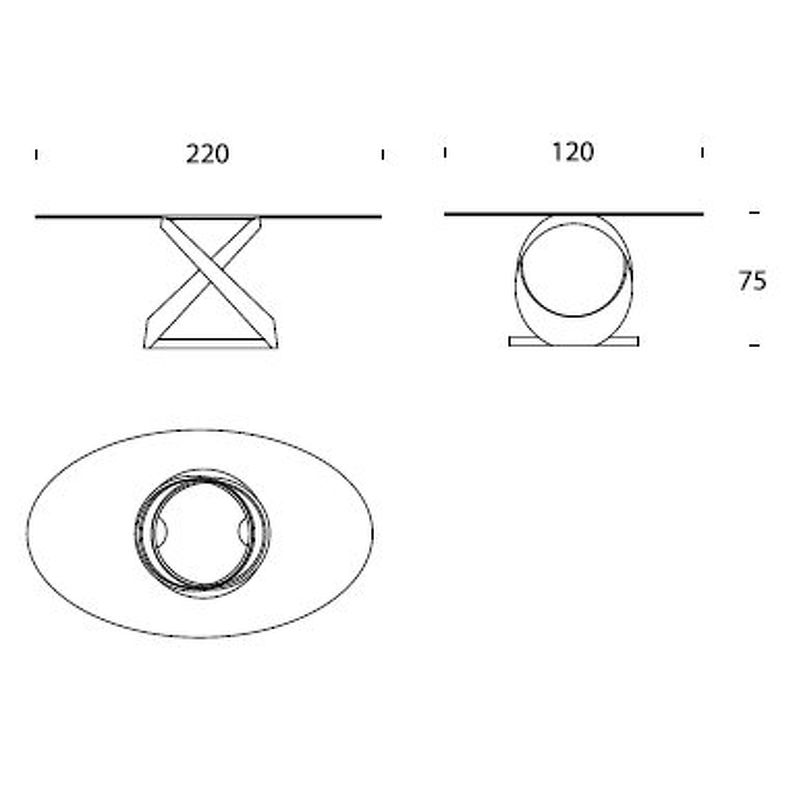 Овальный обеденный стол выполнен в современном стиле. Изящное металлическое основание с мраморной вставкой дополнено стеклянной столешницей.