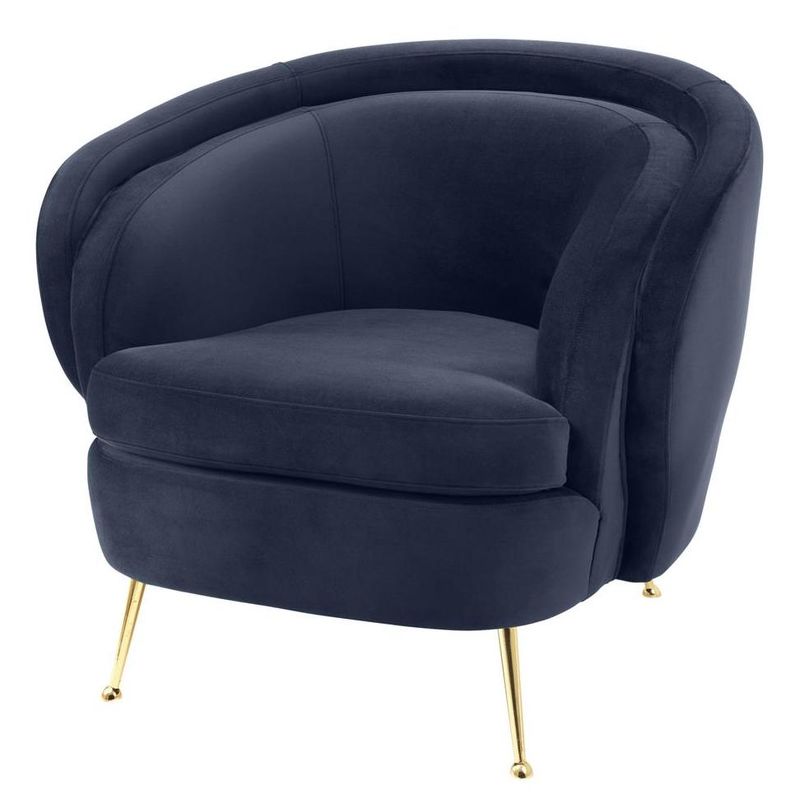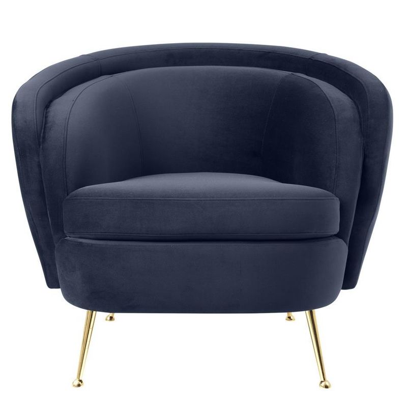 Кресло Orion, отделка латунь, глубокий синий велюр savona