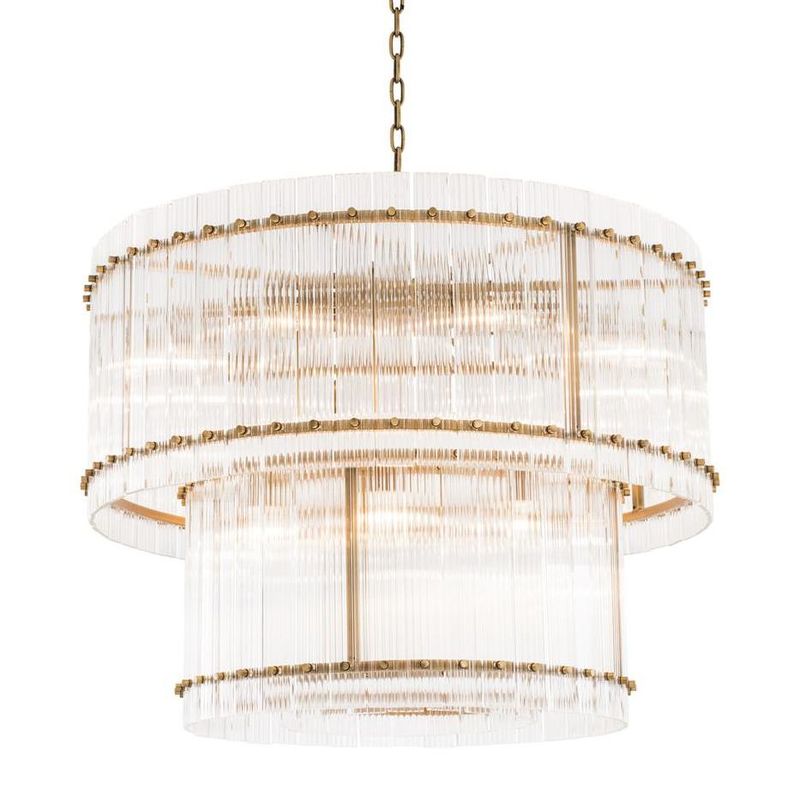 Чтобы придать гламурную и современную эстетику своему интерьеру, сделайте заявление с помощью люстры Ruby L от Eichholtz. Демонстрирующий современный взгляд на классический стиль, этот привлекательный светильник на 16 ламп с отделкой из античной латуни представлен коническим двухъярусным дизайном с рядами текстурированного прозрачного стекла.