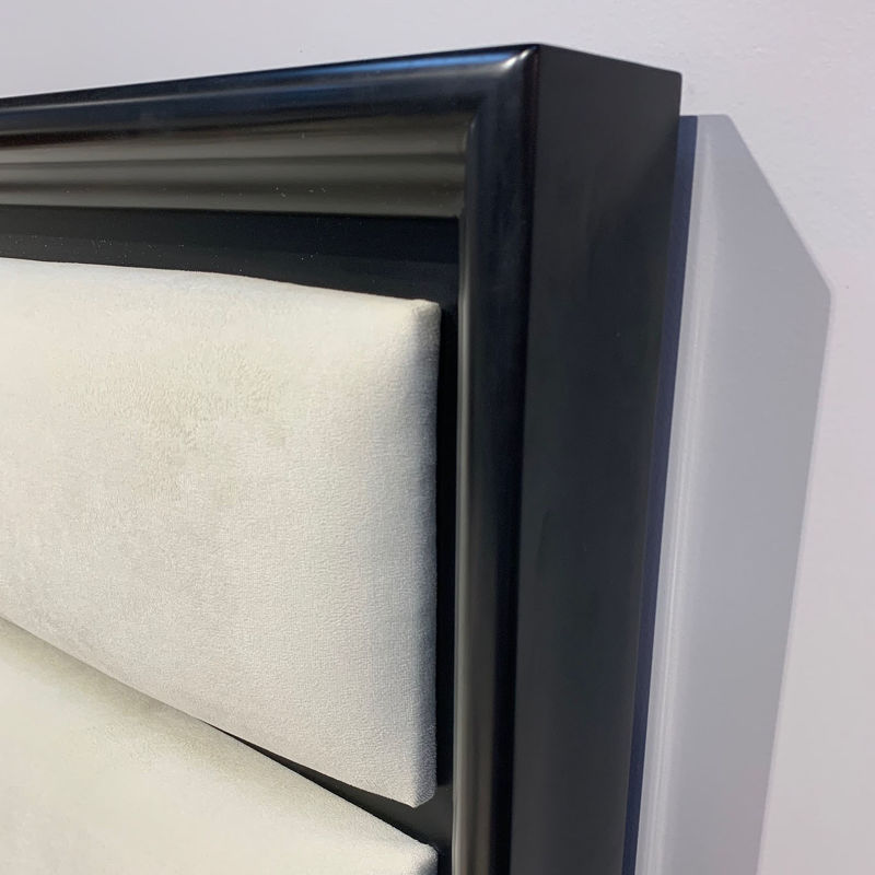 Кровать с решеткой, отделка шпон вишни C, ткань светло-бежевый велюр