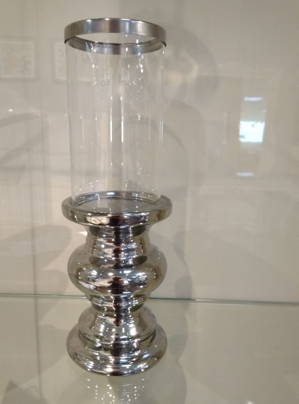 Подсвечник на фигурной ножке выполнен в стиле ар-деко из керамики. В комплекте стеклянная колба.