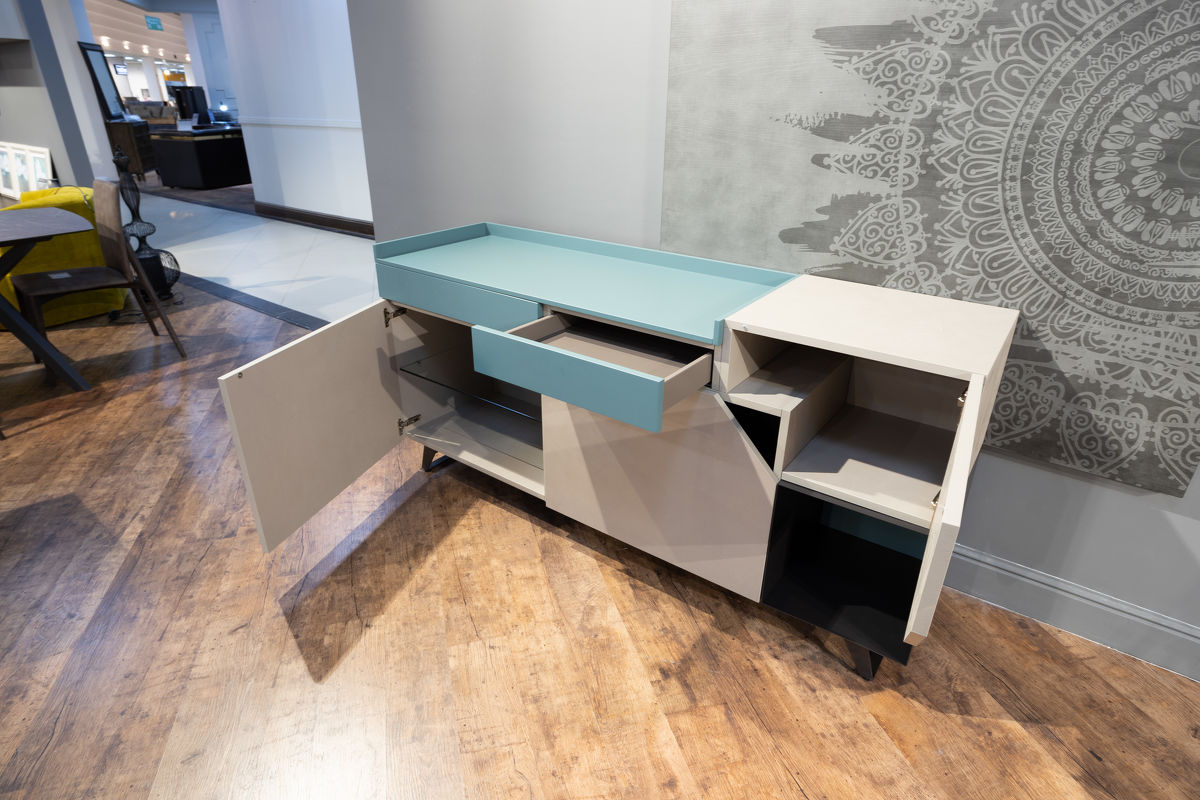 Буфет Remix X03, отделка серый рельефный лак, матовый лак anthracite 160, матовый лак 159 Sage