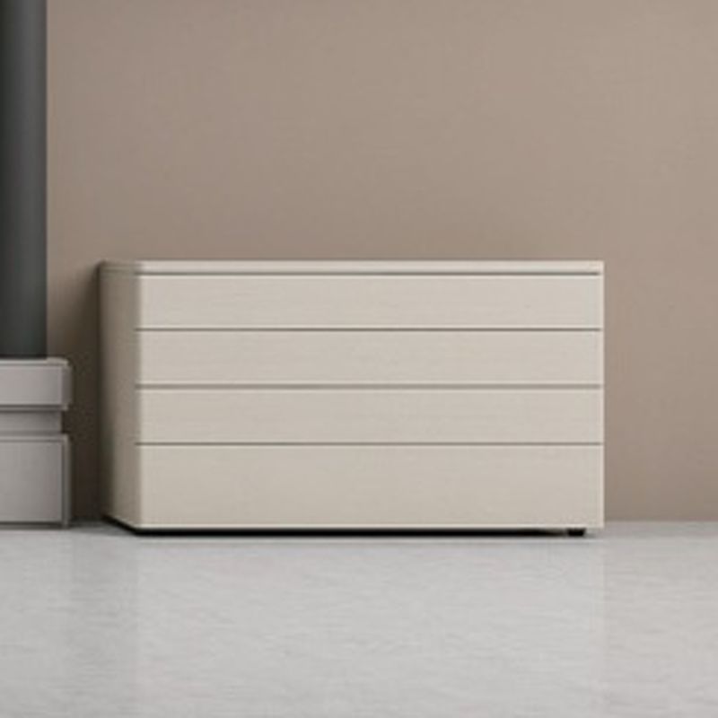 Комод выполнен в современном стиле из ДСП. Оснащен четырьмя ящиками со скругленными углами.
