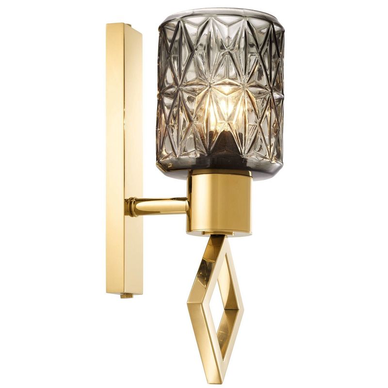 Бра Touch от Eichholtz на вытянутом основании выполнено в стиле ар-деко. Плафон из рельефного тонированного стекла на металлическом держателе привлекает внимание и создает яркий акцент в интерьере.