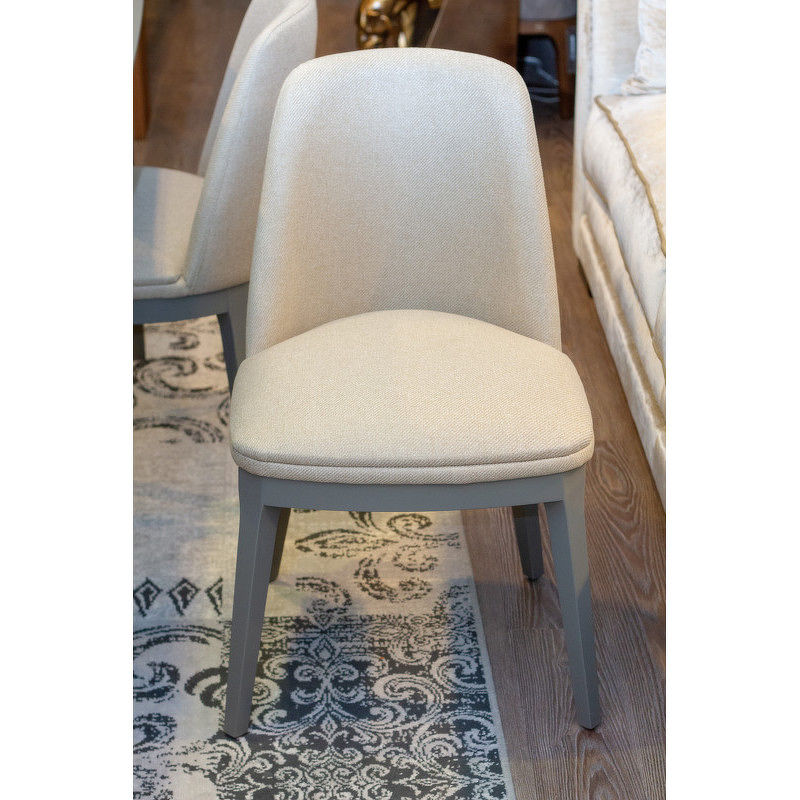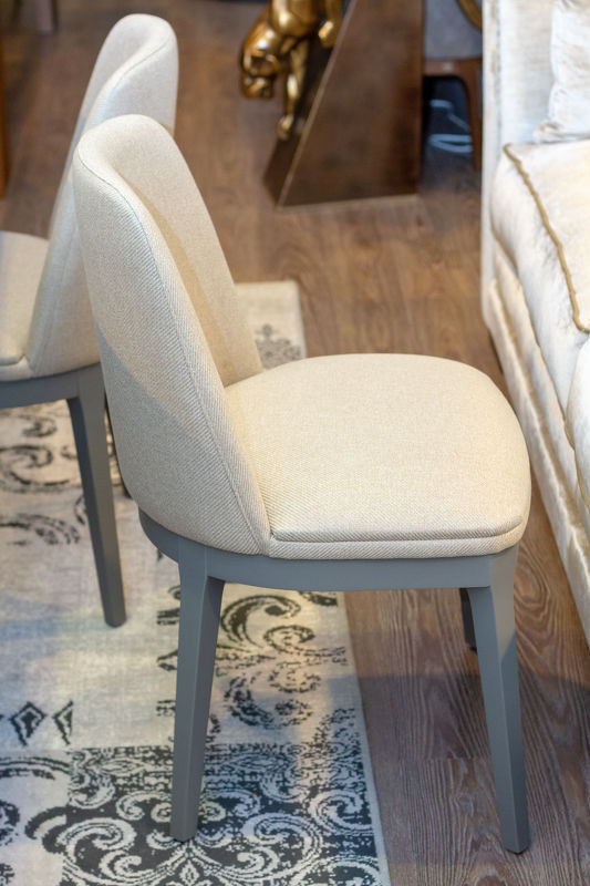 Стул на прямых ножках выполнен в стиле ар-деко. Узкая, слегка изогнутая спинка подчеркивает изящное сиденье с кантом.