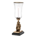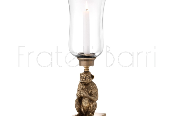 Фигурный подсвечник в виде обезьяны выполнен из латуни. Основание из гранита. Подсвечник дополнен высоким стеклянным плафоном, рассчитан на одну свечу.