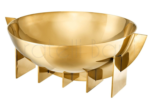 Полукруглая ваза на пяти прямых ножках выполнена из нержавеющей стали.