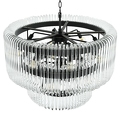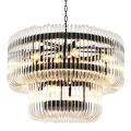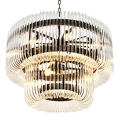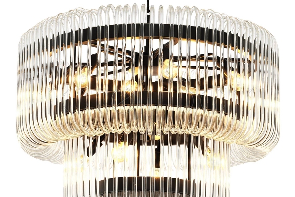 Этот удивительно красивый светильник с двумя округлыми ярусами и сверкающими стеклянными стержнями дополнен бронзовой оправой для элегантного контраста.