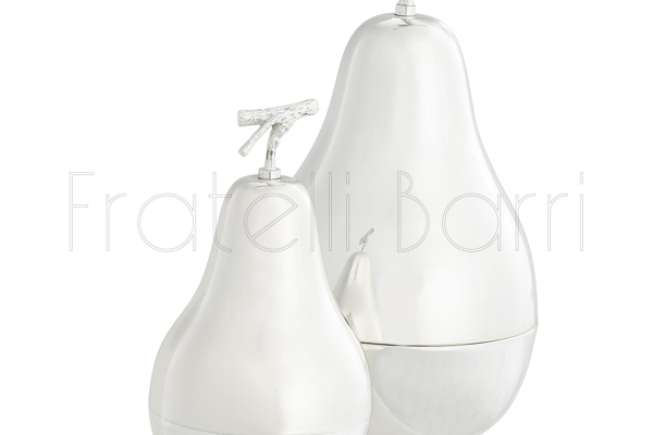 Комплект из двух боксов в виде груши изготовлен из латуни. Такой декоративный элемент привнесет штрих гламура и элегантности в любое пространство, а коробочка идеально подойдет для хранения сладостей, ключей или мелких безделушек.