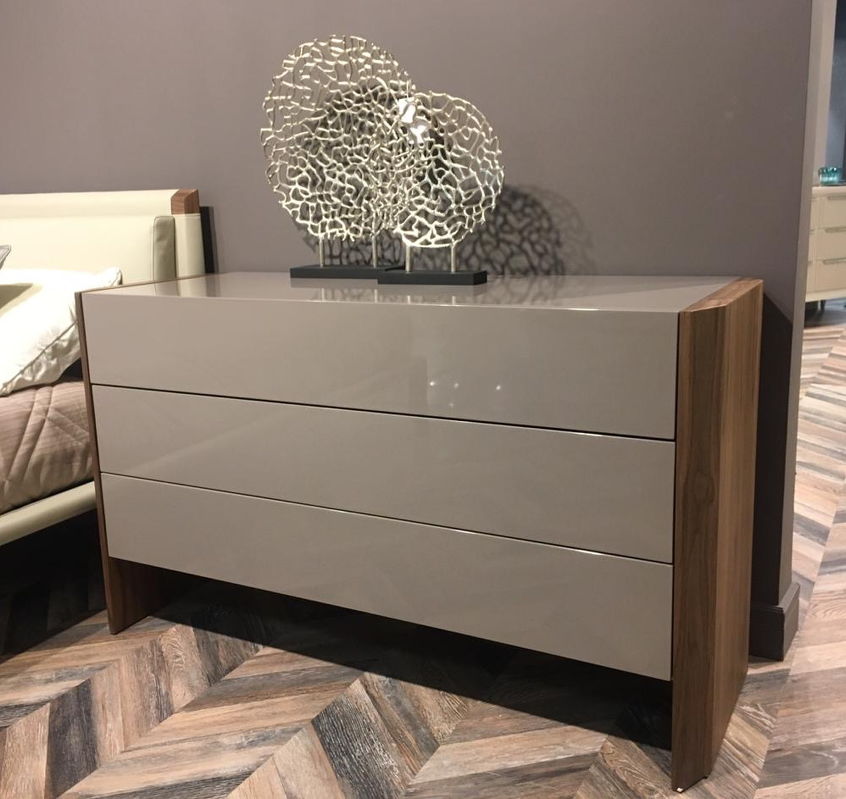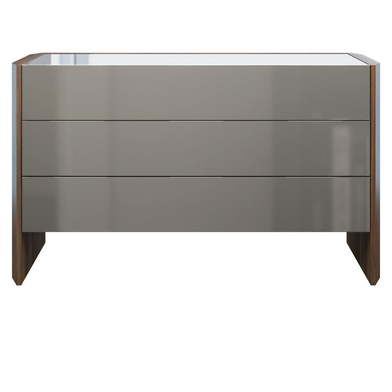 Комод, отделка шпон ореха F, серый глянцевый лак