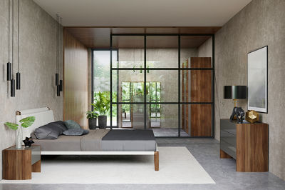 Комбинированный дизайн из глянцевого лака и древесины в шпоне натурального ореха. Высококачественная сертифицированная МДФ высокой плотности.
