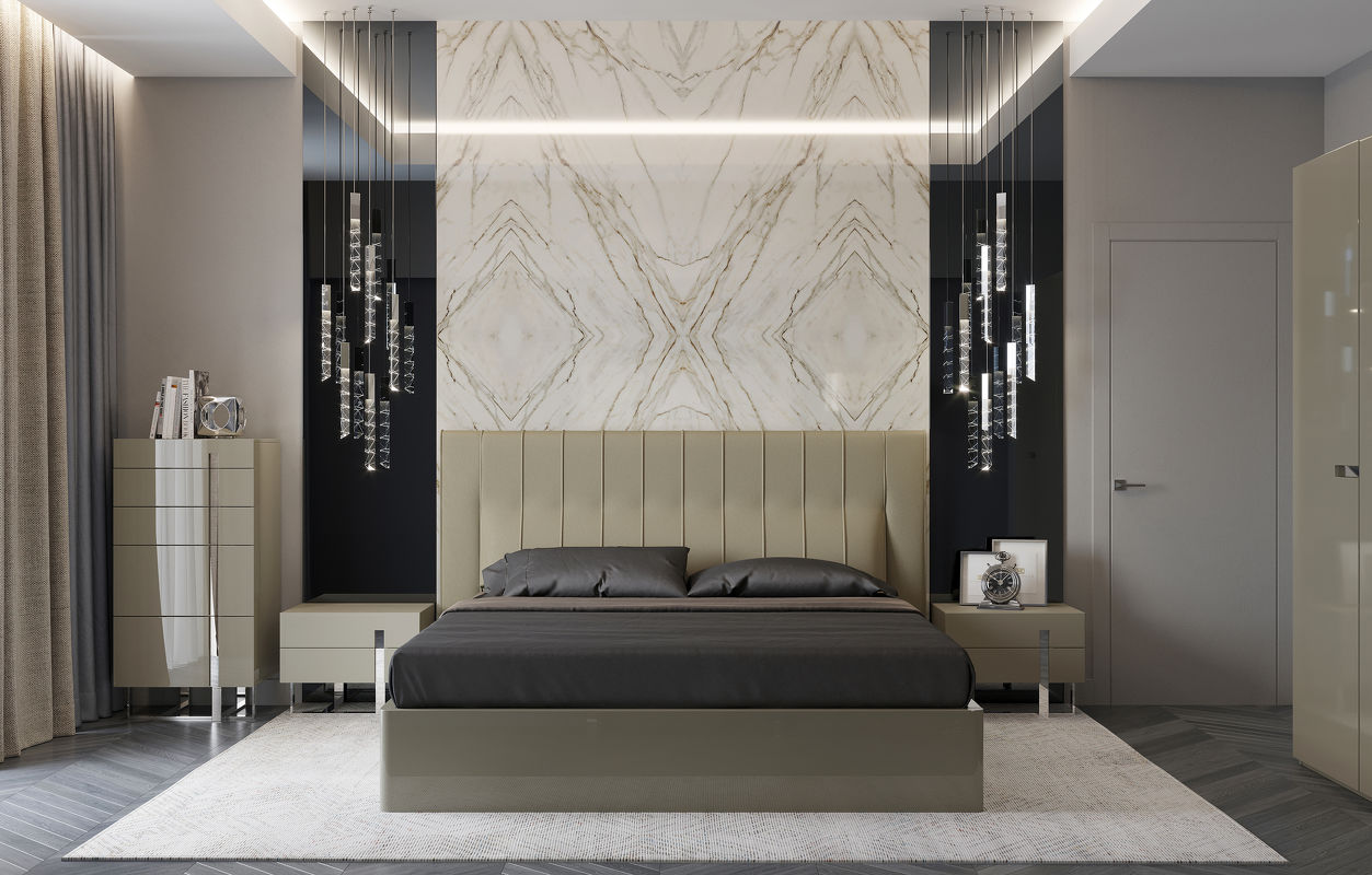 Роскошная кровать с высоким изголовьем от бренда MOD Interiors, коллекция Vigo. Модель отлично впишется как в современный, так и в неоклассический интерьер.