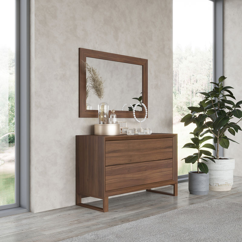 Модель имеет 2 просторных ящика с плавным открыванием обеспечивают тотальный комфорт, позволяя организовать хранение одежды, аксессуаров и других предметов. Чистота линий и эстетичные детали придают комоду современный вид, а его универсальность делает его подходящим как для спальни, так и для гостиной.