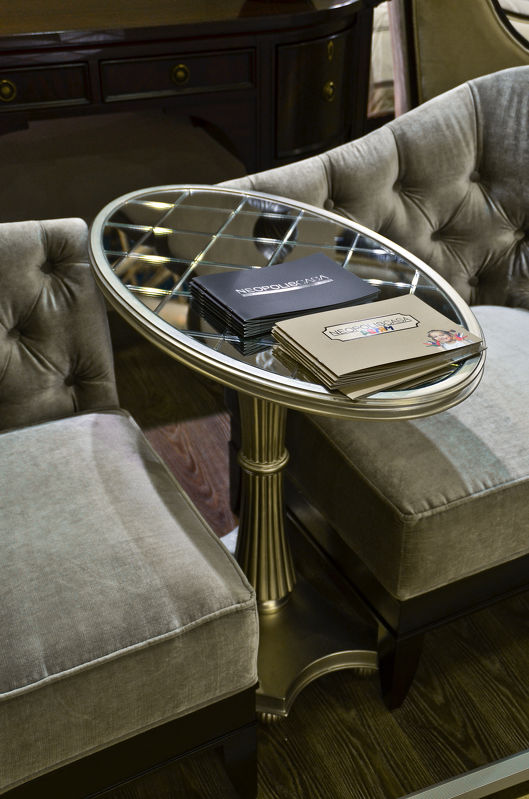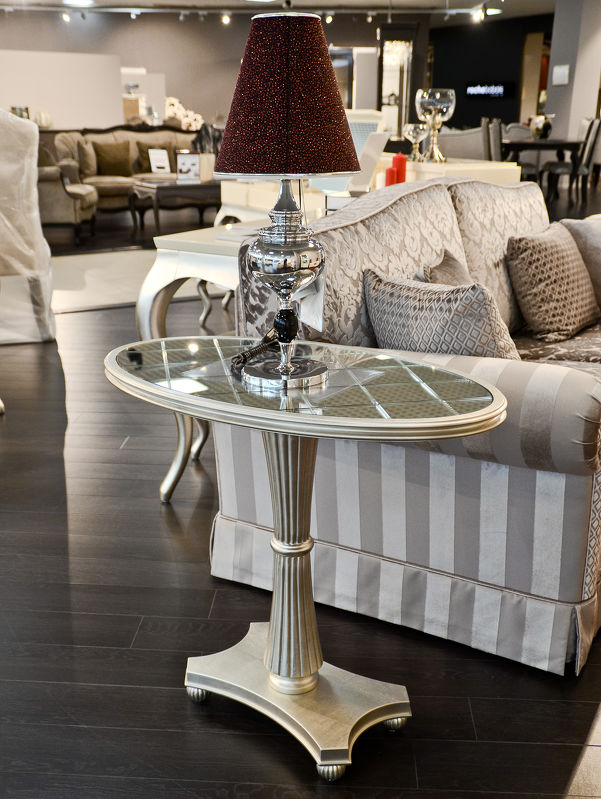 Приставной столик Florence от итальянского бренда Fratelli Barri с овальной столешницей и фигурной базой выполнен в стиле близком к классическому. Зеркальные топ придает особый шарм этому поистине изысканному предмету интерьера.