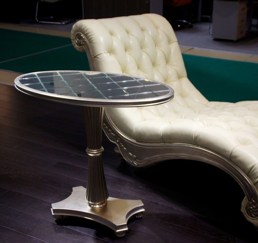 Приставной столик, отделка серебряное напыление, зеркало