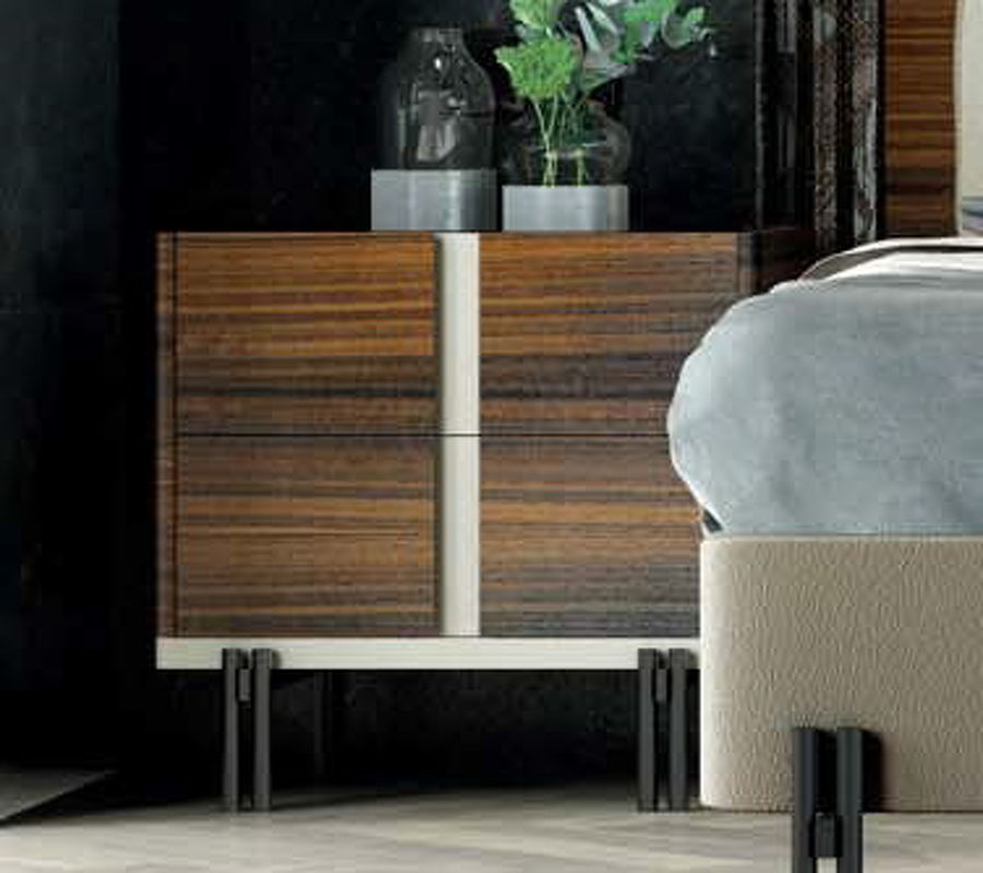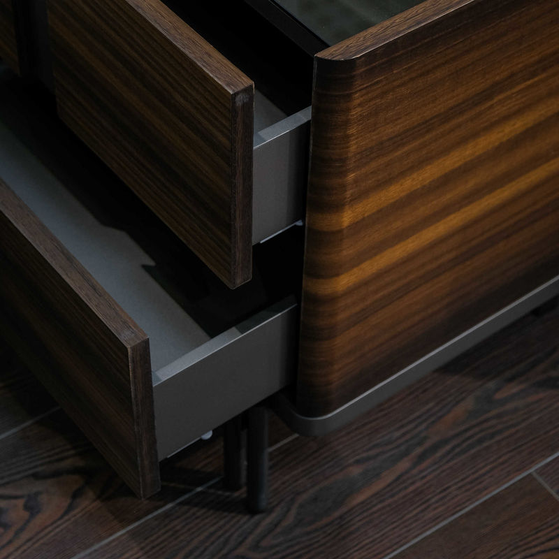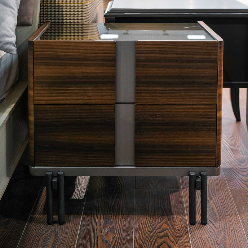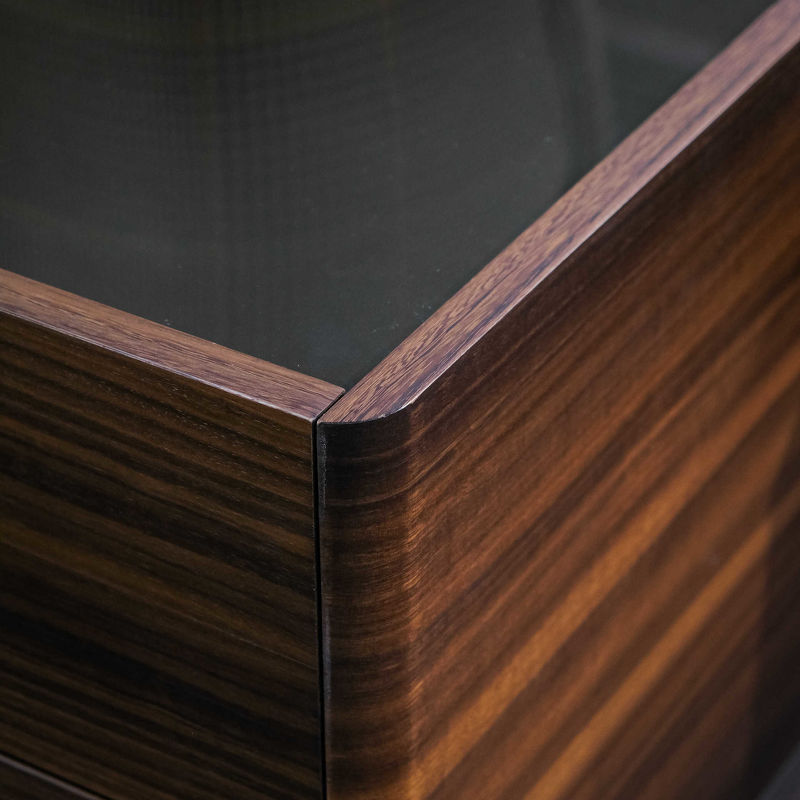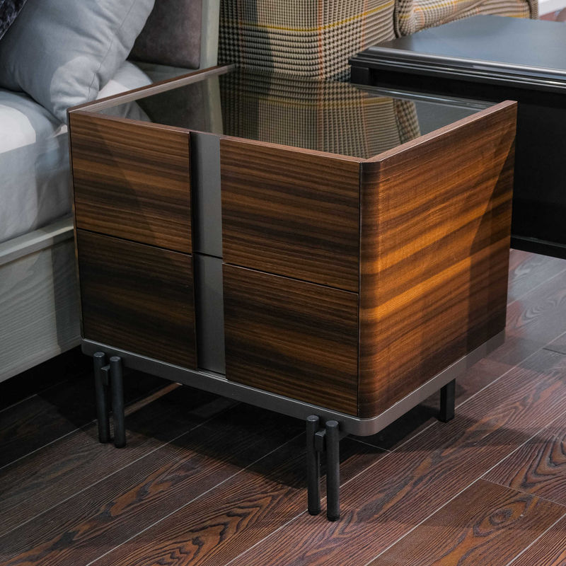 Прикроватная тумбочка, отделка eucalipto, ножки titanio, стеклянный топ