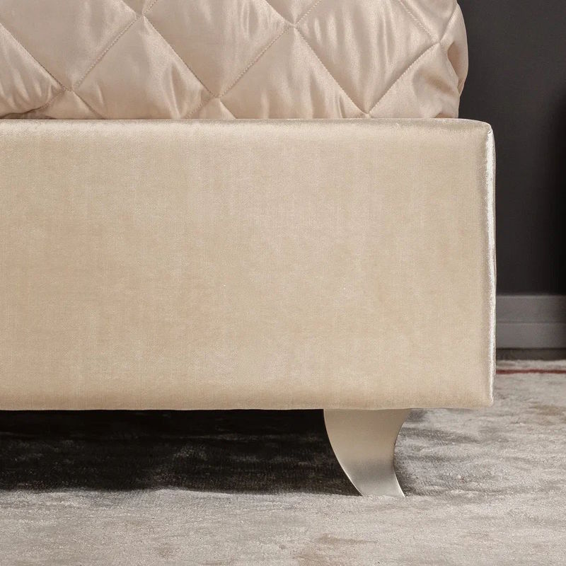 Опорой изделия служит надежно сбитый каркас, установленный на особо прочные ножки оригинальной формы. Бежевый велюровый верх изысканно дополняет элегантность дизайна модели.