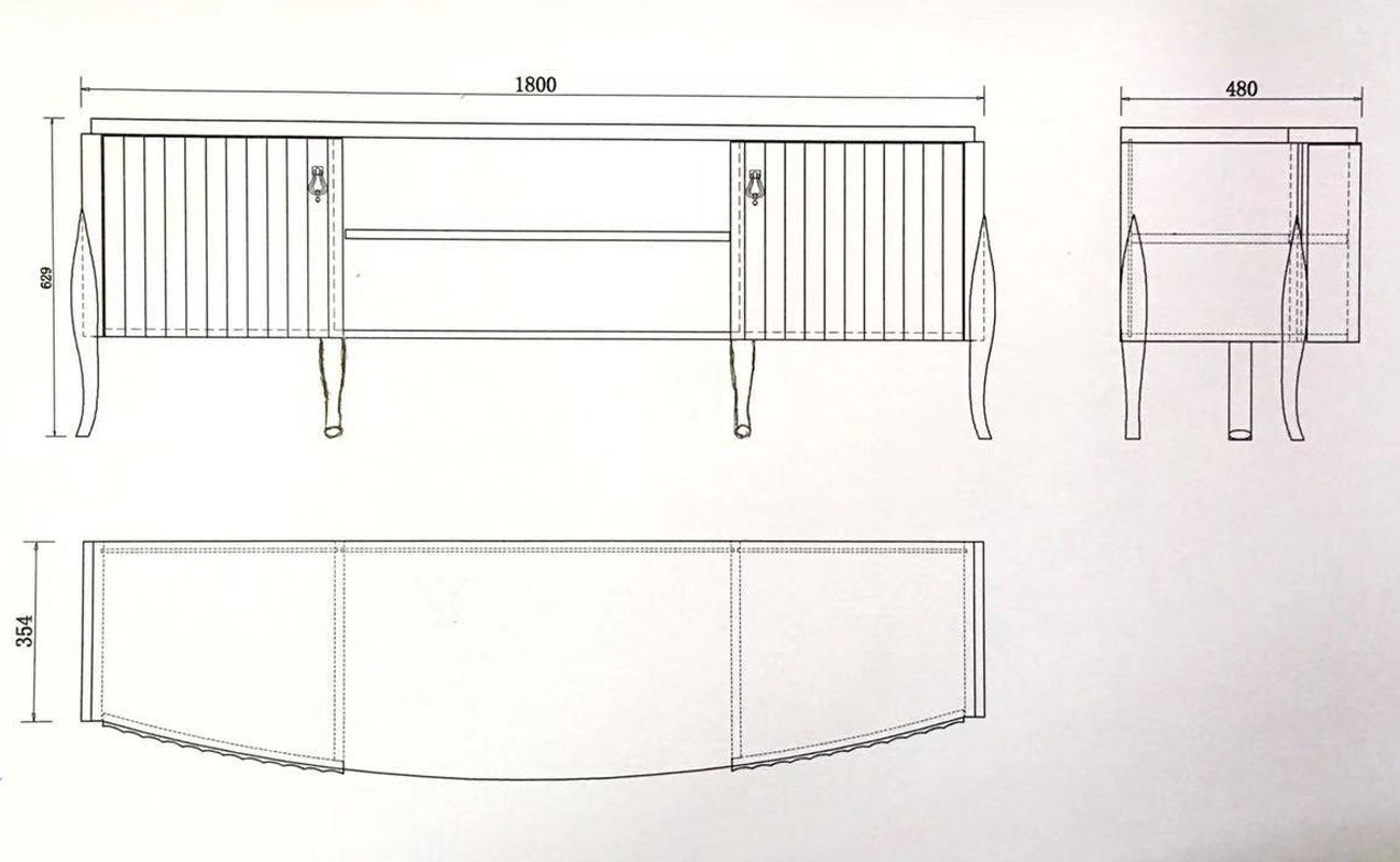 Тумба для ТВ на объемных изогнутых ножках и с модным рифленым фасадом. Модель выполнена в стиле неоклассика с оттенком ар-деко.