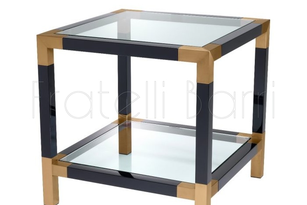 Приставной столик Royalton, отделка черный лак, латунь, стекло