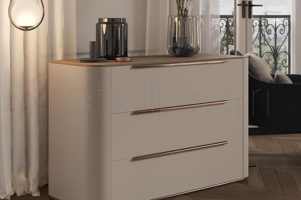 Комод от фабрики Praddy выполнен в современном стиле. Комод оснащен тремя выдвижными ящиками. Топ а отделке из натуральной кожи.